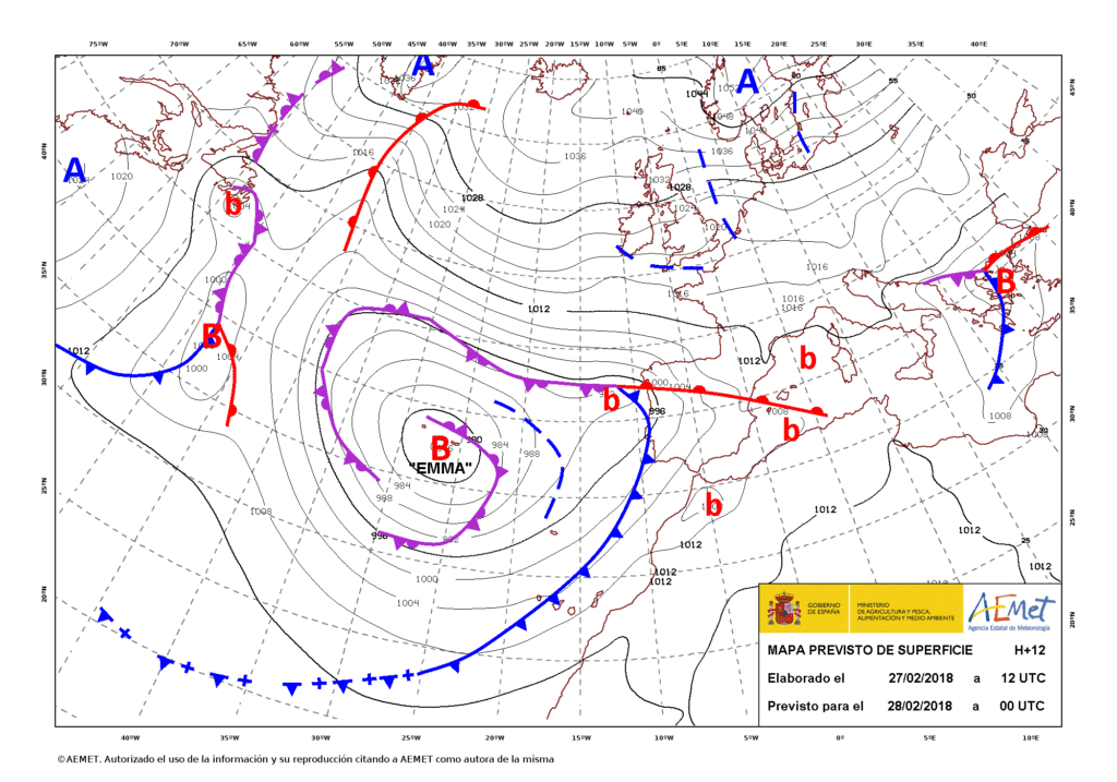 LA BORRASCA EMMA LLEGA ESTE MARTES NOCHE 27 DE FEBRERO A LAS ISLAS CANARIAS