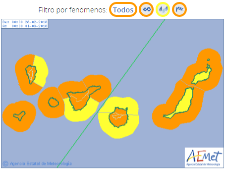 Imagen 4. Mapa de avisos vigentes de AEmet a las 15:00h. del martes 27 para el día miércoles 28 en Canarias